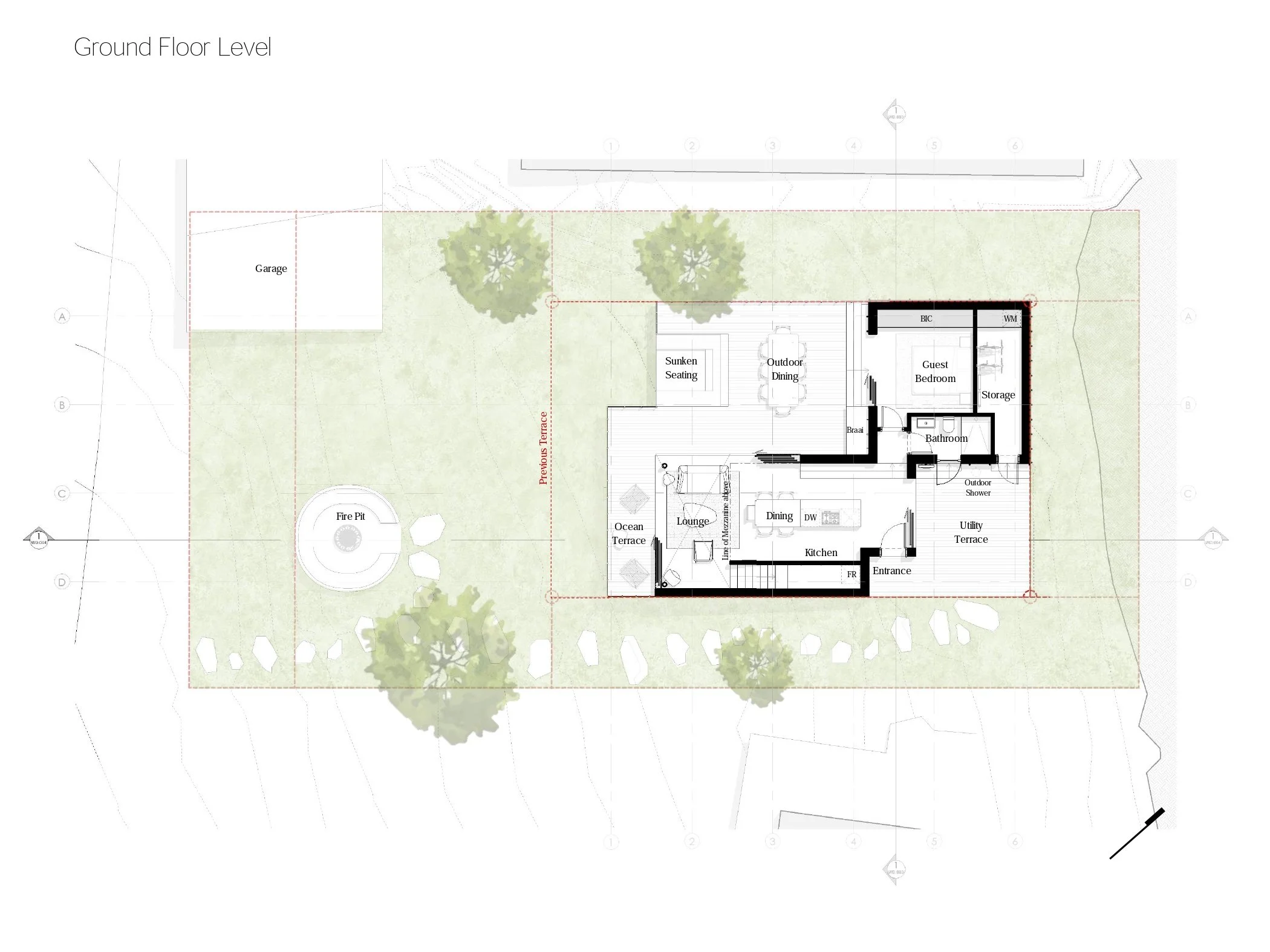 The design is rooted in restraint. A compact timber frame rests on minimal footings, allowing natural vegetation to thrive beneath. Charred timber cladding (Shou Sugi Ban) and a standing-seam metal roof form a robust shell suited to coastal conditions, while deep terraces, sliding screens, and natural ventilation foster an adaptable rhythm between indoor and outdoor life.