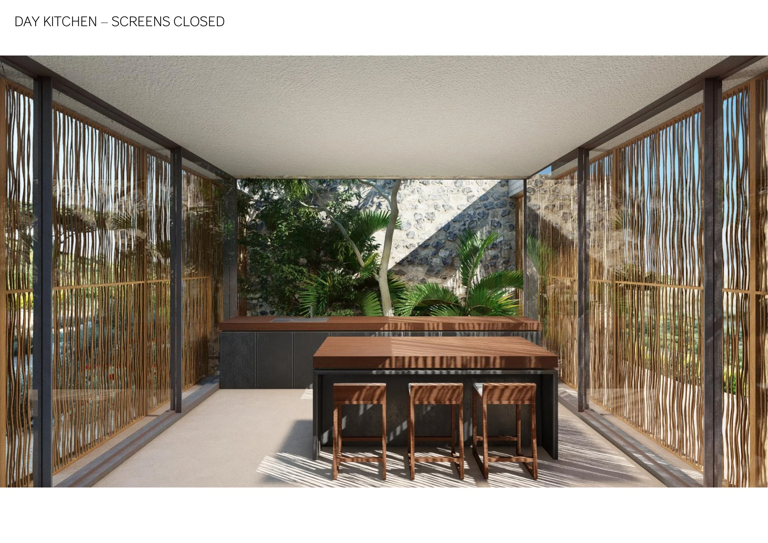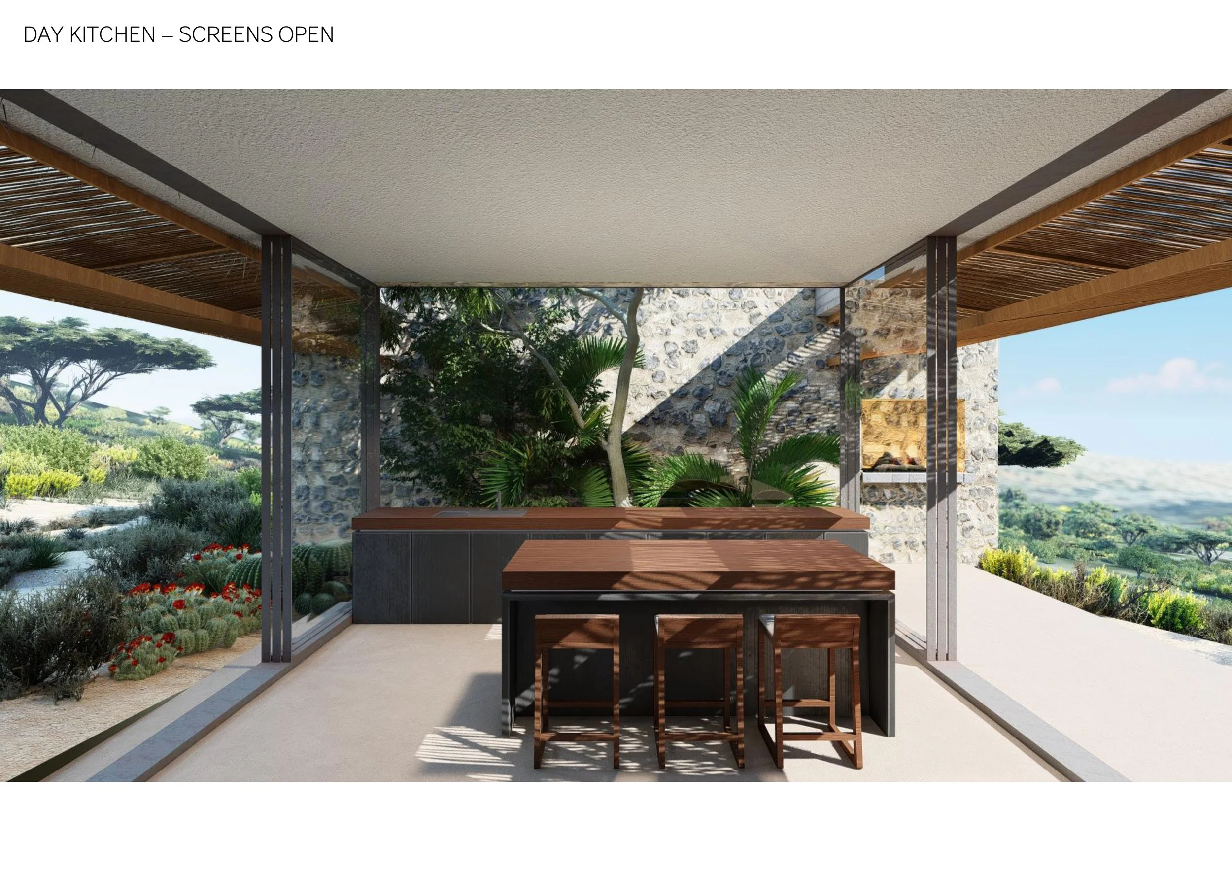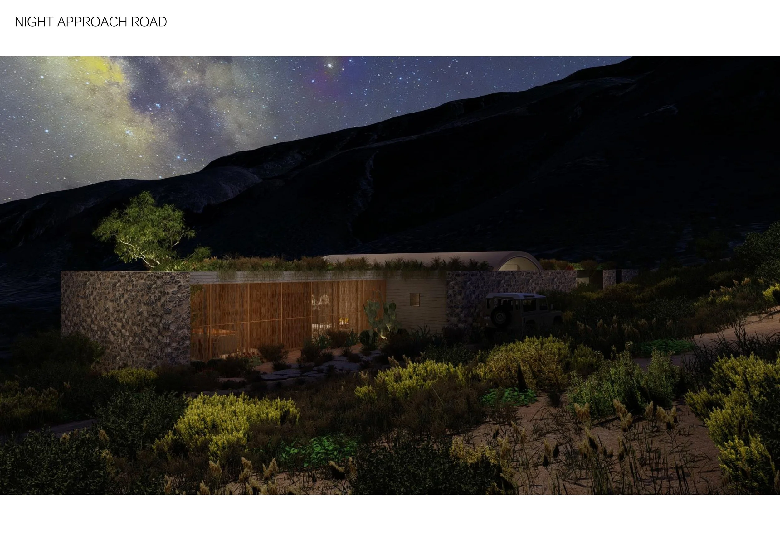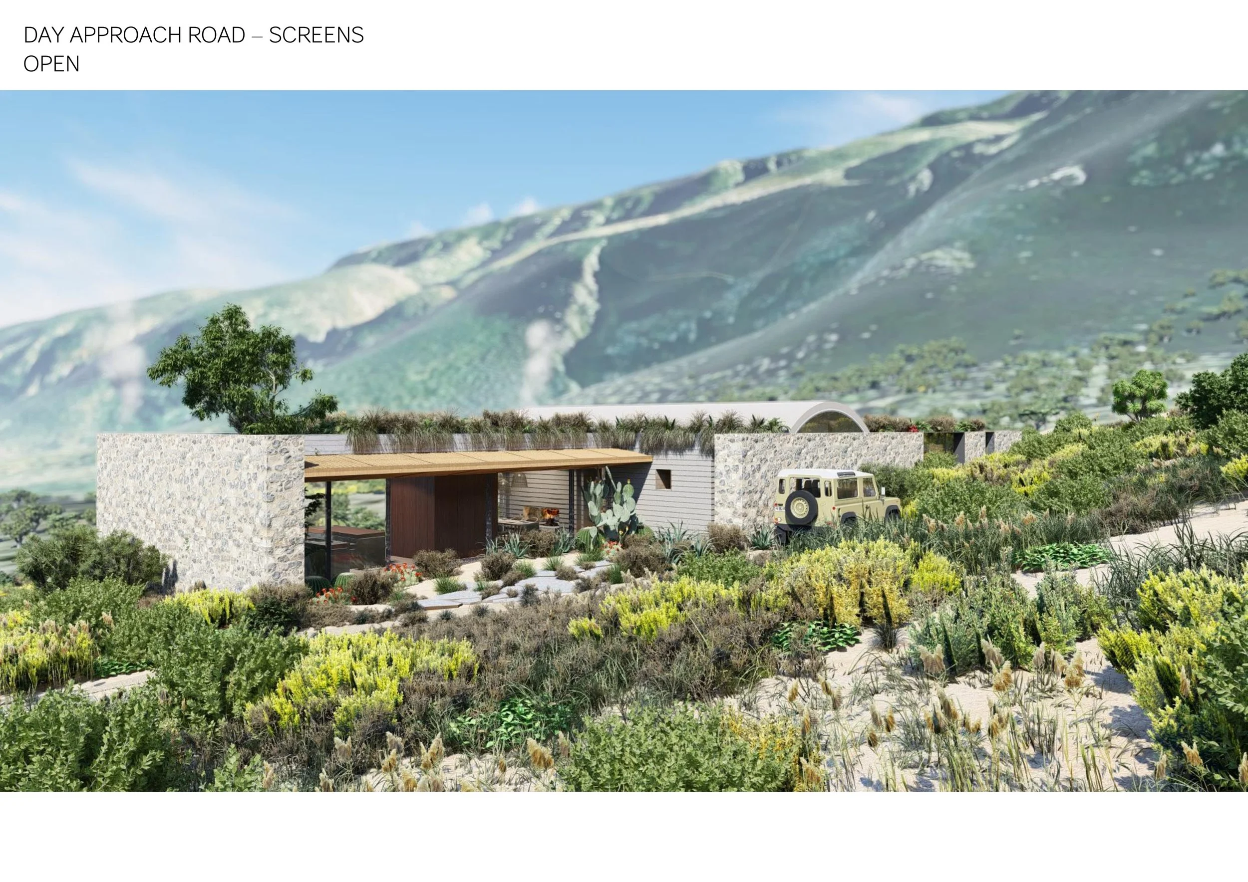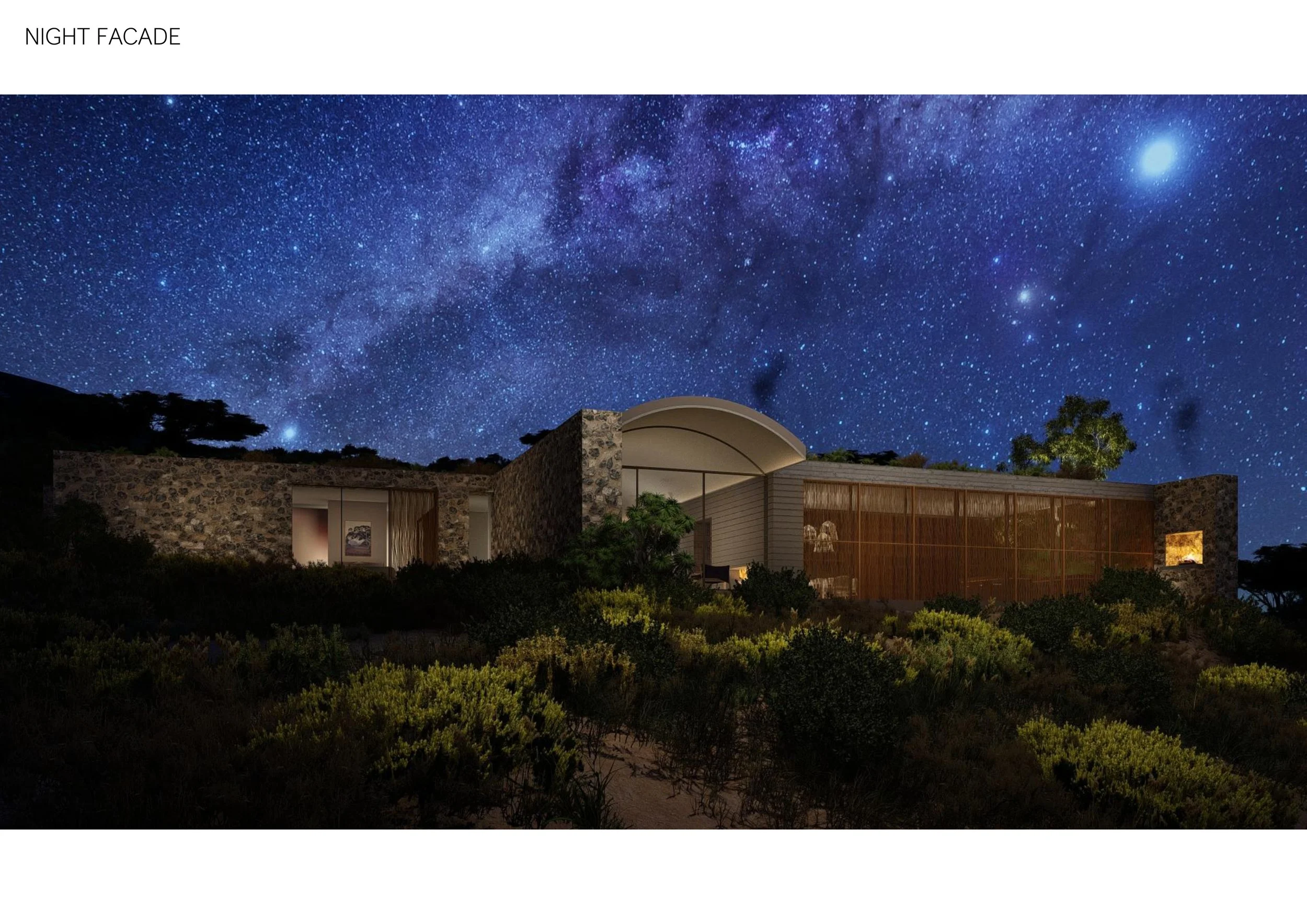 Water harvesting and subsoil storage are integrated beneath the structure, while retractable timber screens allow the building to breathe and adapt between day and night. The result is a retreat that performs quietly and efficiently within its setting, dissolving the boundary between architecture and landscape.