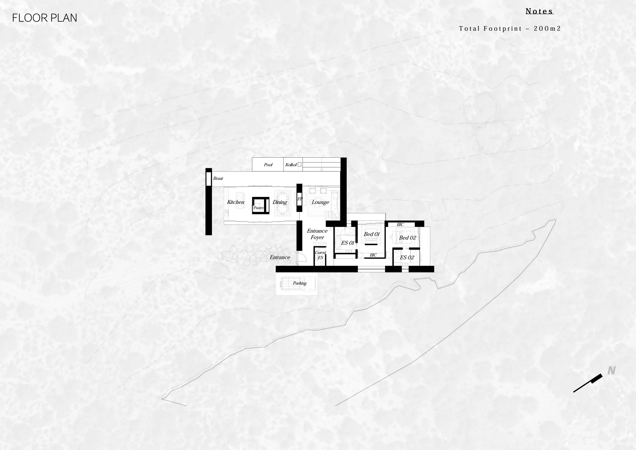 Set within the rugged stillness of the Klein Karoo, Selah explores the notion of pause, reflection, and quiet immersion in nature. The proposal responds to the Touwsberg landscape through a series of thick, grounded masses that open toward the surrounding mountains, balancing protection and exposure, shadow and light.